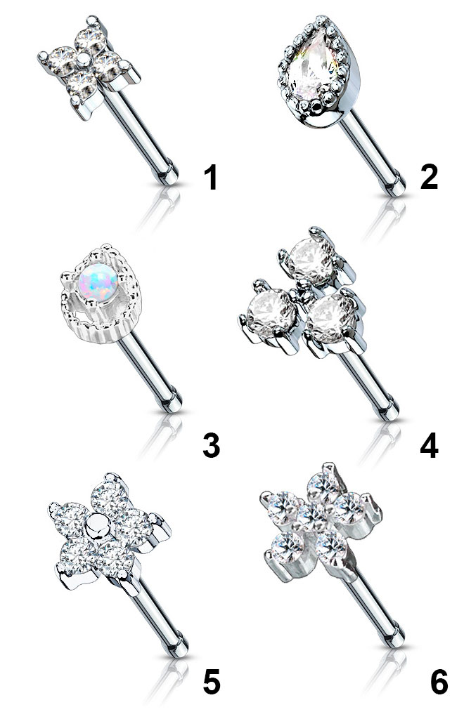 Nenäkoru zirkoneilla - eri vaihtoehtoja Materiaali: kirurginteräs Tapin pituus 6mm Kauniit zirkonit koriseina Valitse haluamasi malli valikosta