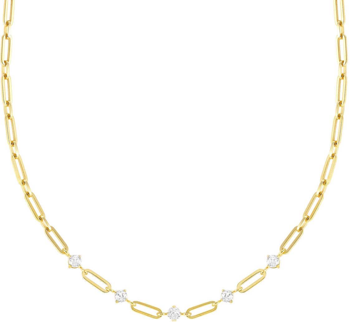 Näyttävä Nomination Chain of style sarjan kaulakoru, jossa säihkyy viisi kirkasta zirkoniaa.