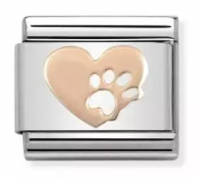 Erittäin kaunis pieni sydän/tassu-pala. Koru tulee Nomination-rannekkeeseeni, joka on omistettu pienen koirani muistoksi, joka hiljattain menehtyi.