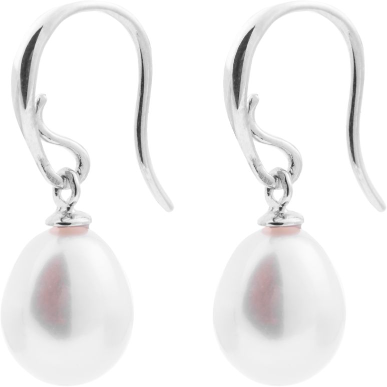 Hopeiset helmikorvakorut kauniin muotoisella koukulla.