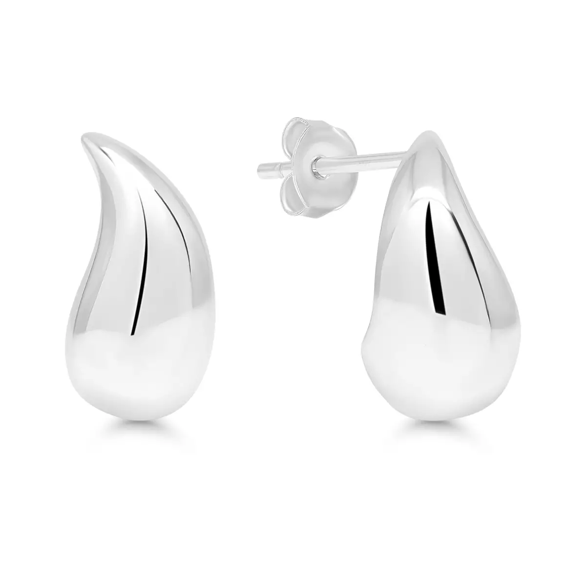 Tyylikkäät pisaranmuotoiset hopeakorvakorut, rodinoidulla viimeistelyllä. Tappikiinnitteiset, korkeus 14 mm.