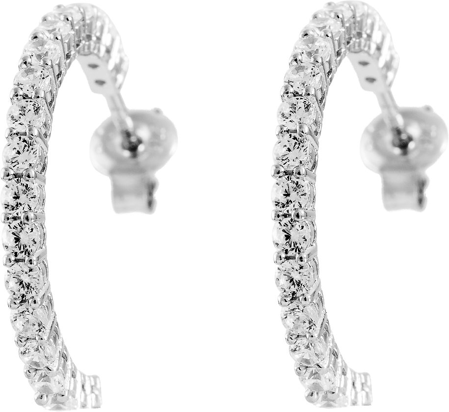Puolirenkaan muotoiset korvakorut, joita koristavat kauniit kirkkaat zirkonit. Korvakorujen koko on 3x23mm ja niissä on tappikiinnitykset.