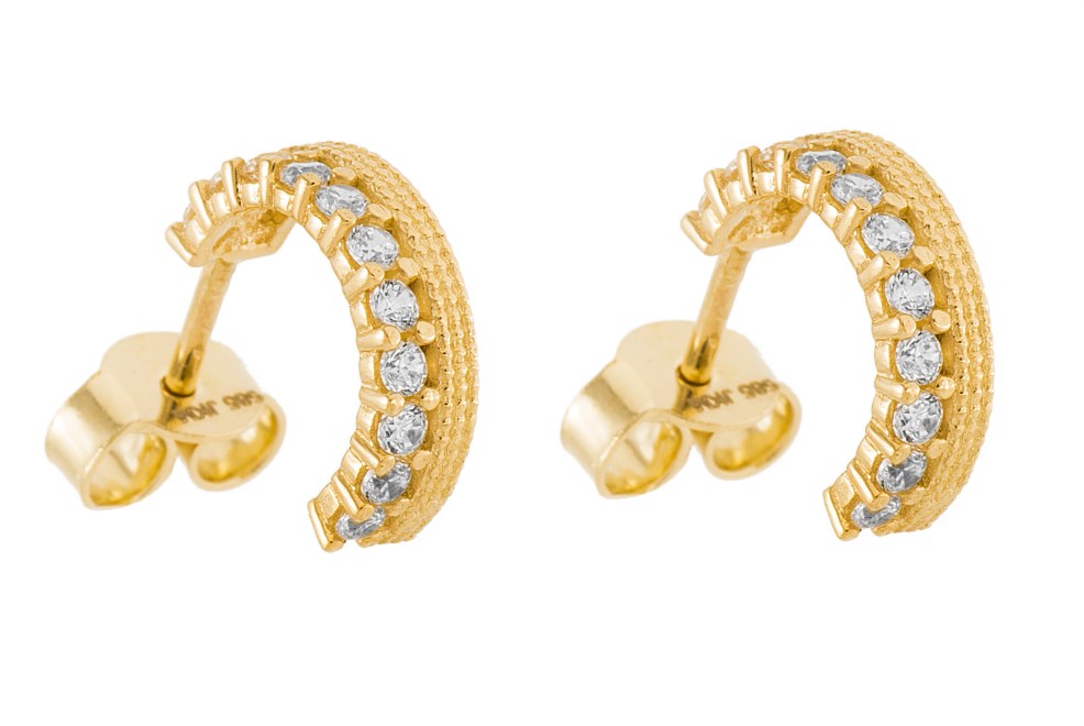 Puolirengaskorvakorut Puolirengaskorvakorut, joiden reunalla kulkee kaunis zirkon rivi. Tuotenumero: 17-K1744 Materiaali: 14k kulta Koko: 12x3mm Tappikiinnitys Zirkonit