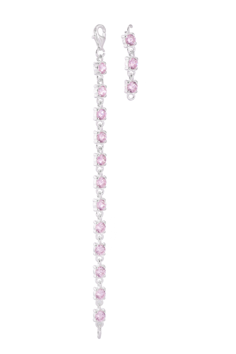 Hopeasta valmistettu, ihanilla pinkeillä zirkoneilla koristeltu ranneketju. Ketjun pituus 10cm, mukana toimitetaan erillinen 2cm lisäpala, joka on helposti itse kiinnitettävissä. Loistava kastelahjaidea.