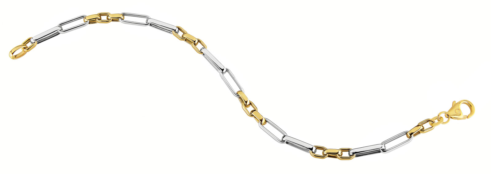 Korut, kellot ja lahjatavarat verkkokauppamme laajasta valikoimista! Tyylikäs ranneketju joka koostuu valko- ja keltakultaisista lenkeistä.