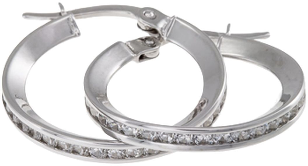 Korvarenkaat RHK372 Tuotteen ominaisuudet: Materiaali: Hopea Koko: 20 x 2,5 mm Zirkonein koristeltu