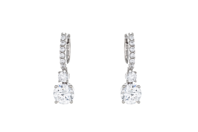 Kauniit riippuvat korvarenkaat säkenöivän upeilla kirkkailla zirkoneilla.