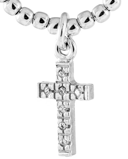 Kirkkain zirkonein koristettu risti, joka on laitettu palloketjuun. Ketjun pituutta voi säätää 40 ja 44cm välillä, joten korusta löytyy varmasti oikea mitta kaulaan kuin kaulaan. Ketjun paksuus on 2mm ja ristillä on kokoa 13,5 x 7mm.