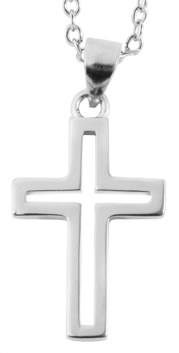Hopeasta valmistettu ristiriipus, jonka rodinoitu pinta takaa hienon kiillon. Ristissä on noin 1 mm leveä leikkaus, joka jättää sen hienosti avoimeksi. Yksinkertainen, mutta tyylikäs.