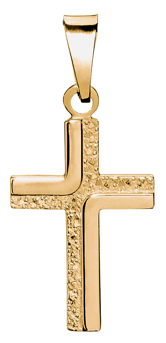 Kultainen rippiritsi, jossa tasaisen pinnan vastapainoksi on tuotu "rikottua" tekstuuria antamaan luonnetta ristille.