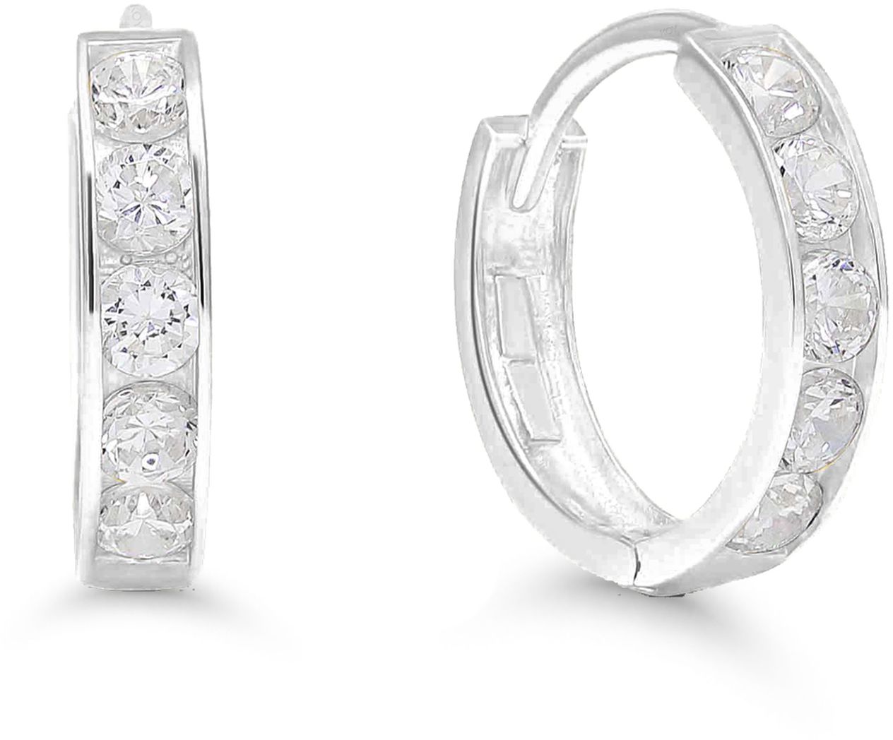 Kauniit 14 karaatin valkokullasta valmistetut korvarenkaat. Siroja korvarenkaita koristaa zirkonit.