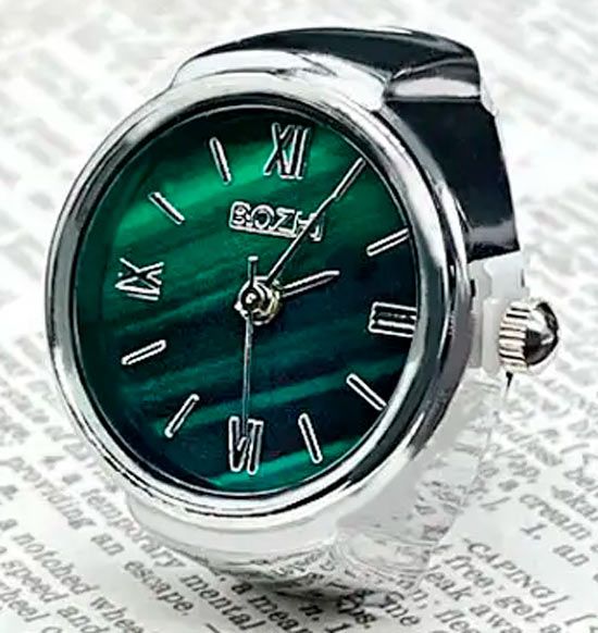 Kauniilla vihreällä kellotaululla varustettu sormuskello ei ole vain ainoastaan ajan mittari, vaan myös näyttävä koru, joka nostaa asusi uudelle tasolle.
