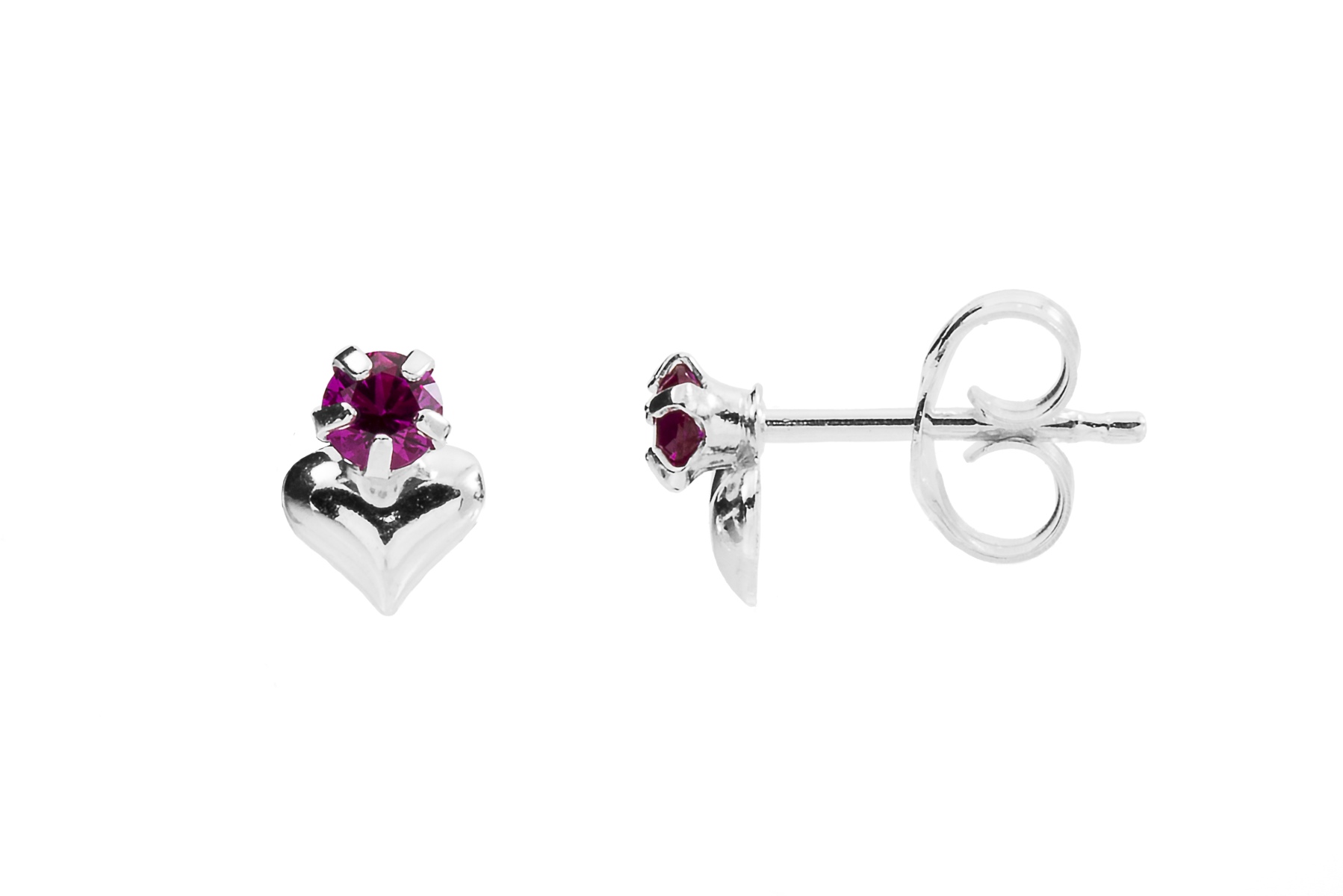4,5mm sydän ja punainen kivi. Korvakorut ovat hopeaa ja tappikiinnityksellä.