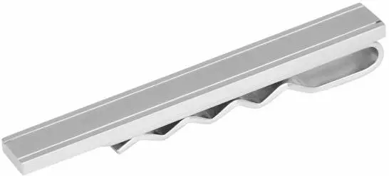 Näyttävä ruostumattomasta teräksestä valmistettu solmioneula ajattomilla vaakaraidoilla.