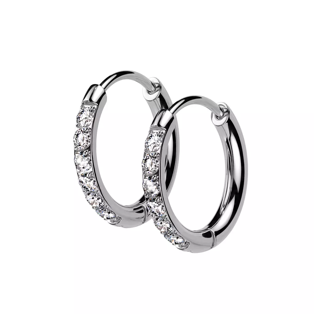 Ruostumattomasta teräksestä valmistetut zirkonkoristellut korvakorut.