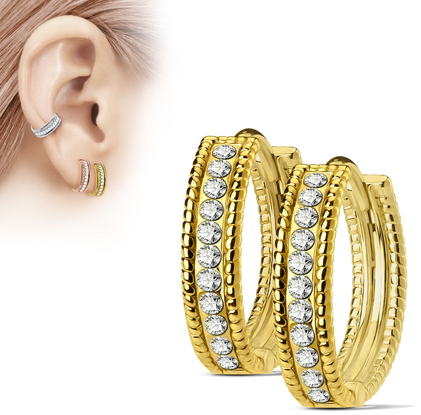 Timanttileikatut renkaat 12mm HK033 Tuotteen ominaisuudet: Materiaali: Kirurgin teräs Zirkonikoristelu Leveys: 0,8mm, Halkaisija: 12mm