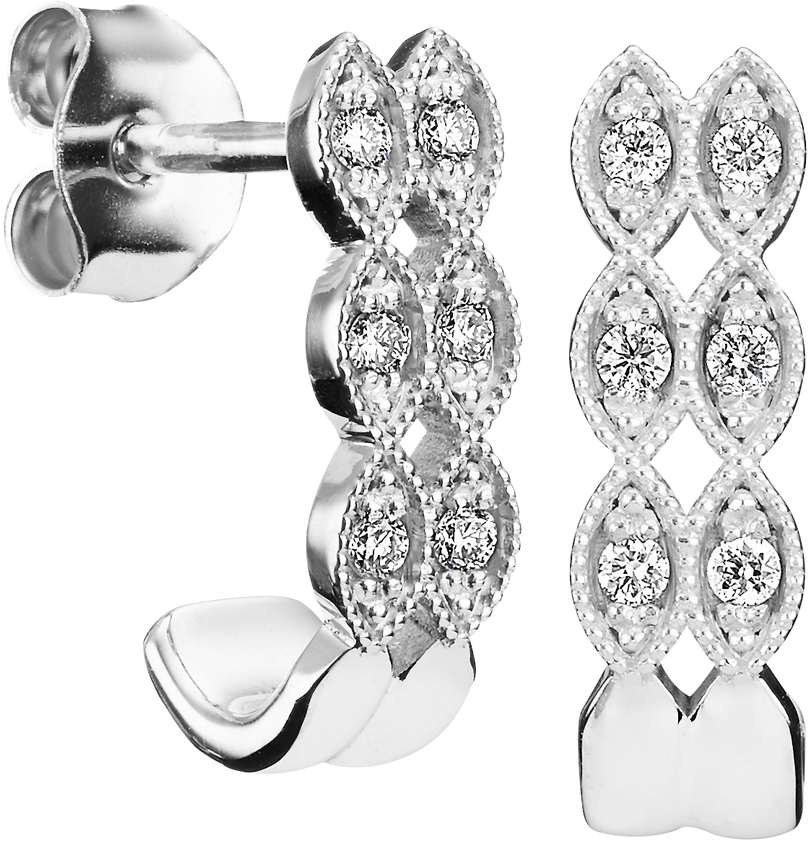 Kauniit valkokultaiset Kohinoor Clara korvakorut sopivat täydellisesti yhteen muiden Kohinnor Clara-sarjan korujen kanssa. Korujen rungon materiaali on 14 karaatin valkokultaa. Koruihin on istutettu kuusi timanttia, joiden yhteispaino on 0,12 ct. Väriltään timantit ovat kirkkaat (tai värittömät katsonta kannasta riippuen). Puhtauden puolesta timanttien luokka on Si. Se tarkoittaa, että timanteissa on pieniä sulkeumia, joita ei paljaalla silmällä huomaa.