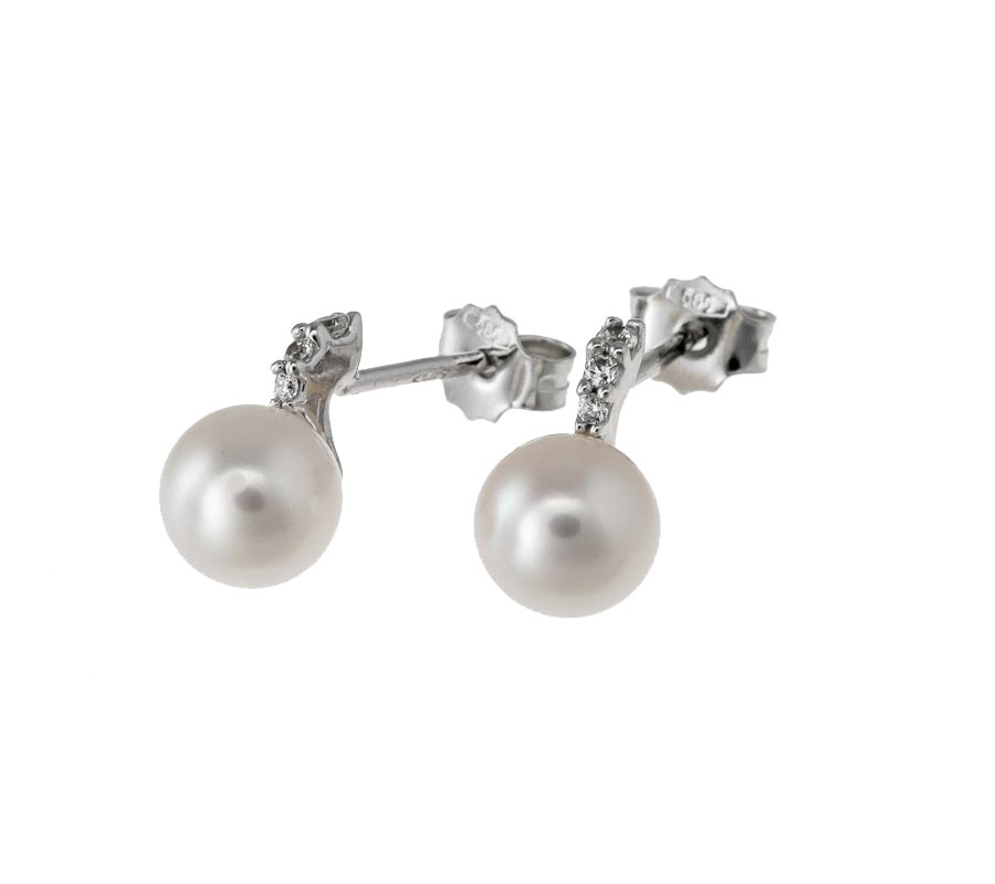 Valkokultaiset helmikorvakorut kirkkailla zirkoneilla 17-K1710 - Kultaiset korvakorut - 17-K1710 - 1