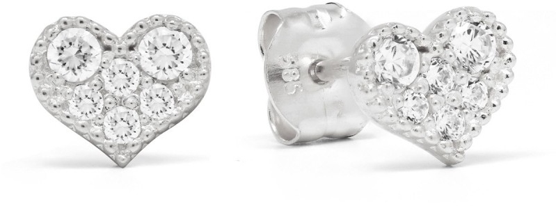 Sirot valkokultarunkoiset sydämen muotoiset korvakorut, joissa on vahva tappikiinnitys. Korvakorujen pintaan on istutettu kimaltavan kirkkaita zirkoni-korukiviä. Sirosta koosta johtuen, korut soveltuvat arkikäytön lisäksi myös juhlapukeutumiseen.