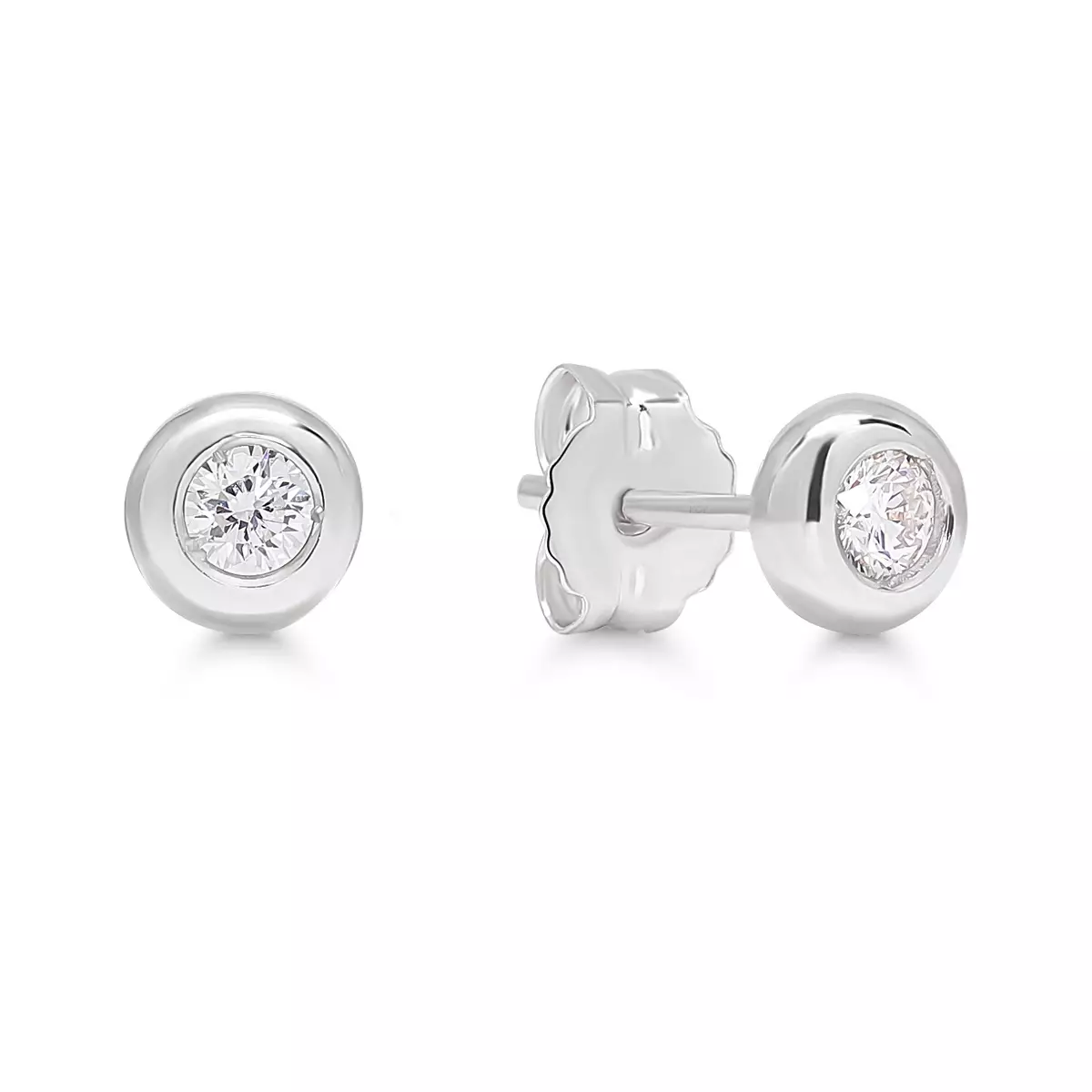 Klassiset ja ajattoman tyylikkäät valkokultaiset nappikorvakorut laboratoriotimanteilla. Molemmissa korvakoruissa on 0.05ct värittömät River (D) ja todella puhtaan virheettömät VVS laboratoriotimantit. Timantit ovat valmistettu hiilineutraalisti.