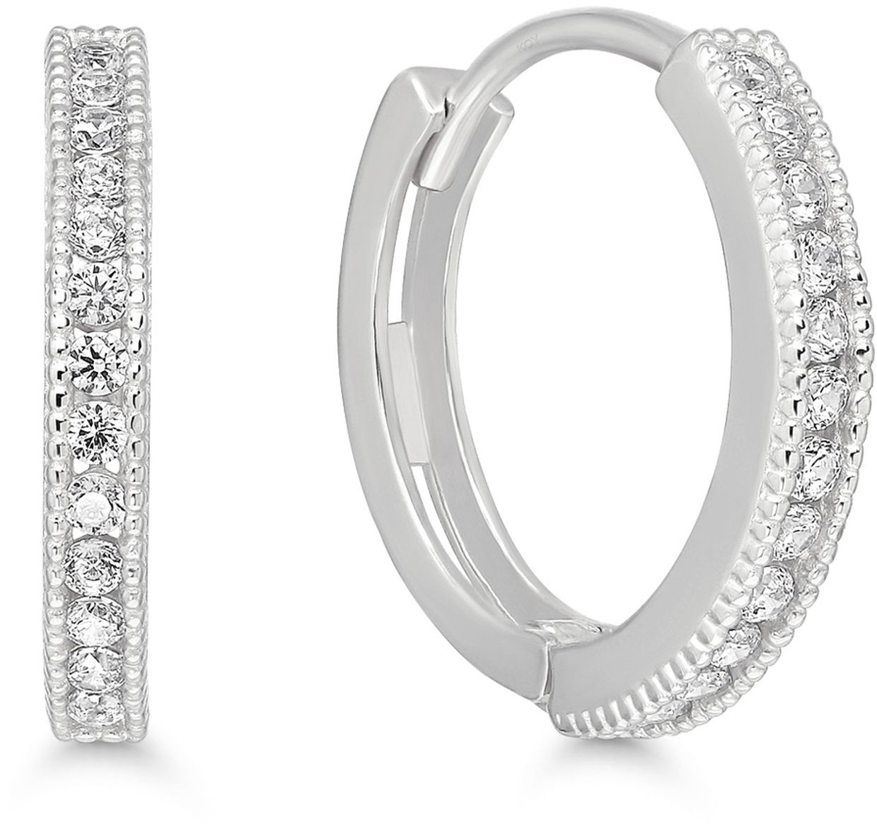 Tyylikkäät 14 karaatin valkokullasta valmistetut korvarenkaat. Renkaita koristaa istutetut zirkonit.