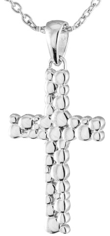 Hopeasta valmistettu rippiristi. Risti erottuu speasiaalilla ulkonäöllään massasta. Korkeutta löytyy 28 mm ja leveyttä 13 mm.
