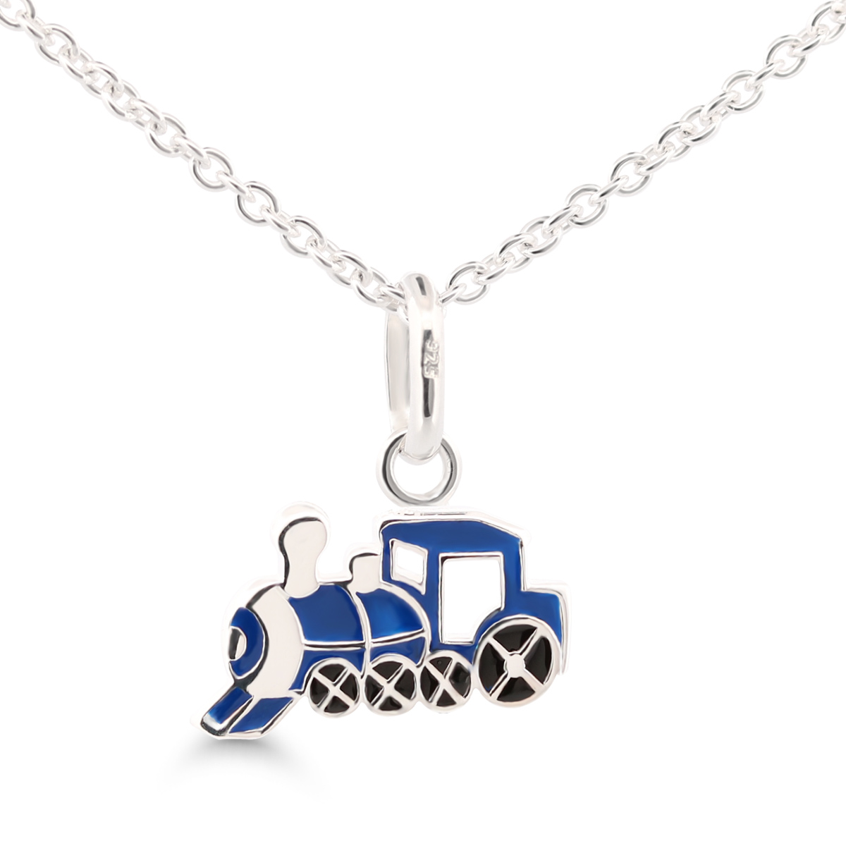 Lasten sininen veturi riipus. Sisältää ketjun.