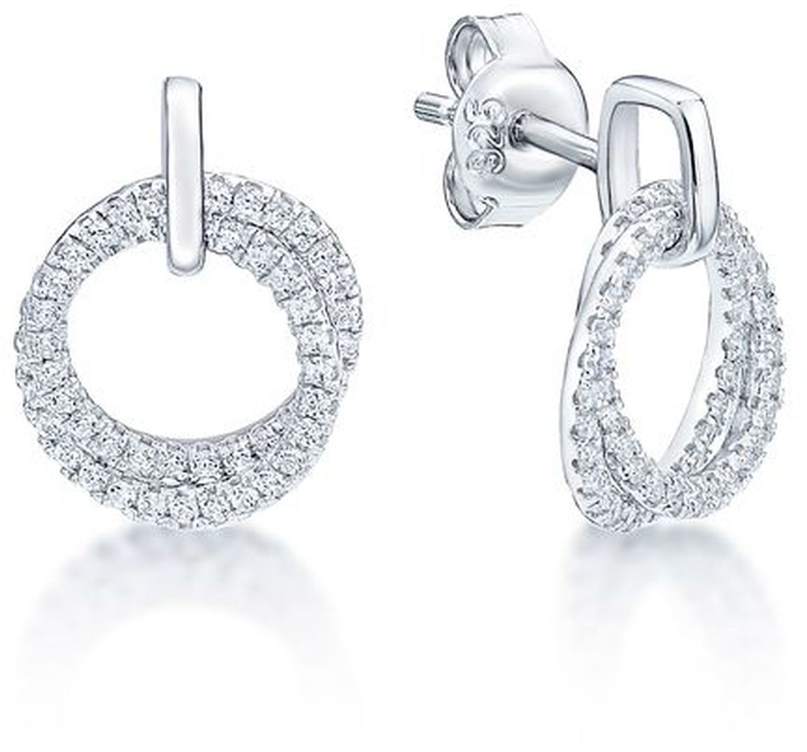 Zirkoneilla koristellut tuplarengaskorvakorut tappikiinnityksellä.