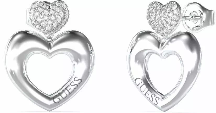 Isomman avomallisen sydämen reunasta löytyy Guess koruille tunnuksenomainen Guess-logo.
