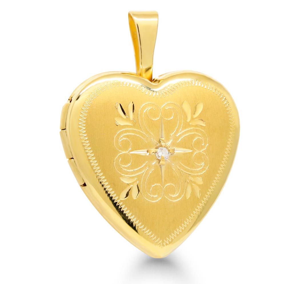 Hopeamedaljonki sydän 17mm timantilla – 14K kulta pinnalla