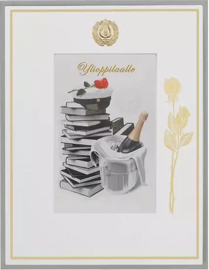 Kehys Ylioppilas Tyylikäs, tinattu valmistujaiskehys. Koristeena kullansävyinen lyyra yläreunassa sekä ruusu sivussa. Kehyksen koko: 23,5 x 18,5 cm, siihen mahtuu kuva kokoa 14 x 9 cm. Mahdollista... Lue lisää