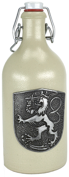 Vanhan ajan tyyliä mukaileva keraaminen pullo! Pullossa on hieno tinalaatta, jota koristaa kukas muukaan kuin itse Suomileijona. Pullon vetoisuus on 0,5l ja siinä on hieno perinteikäs korkki.