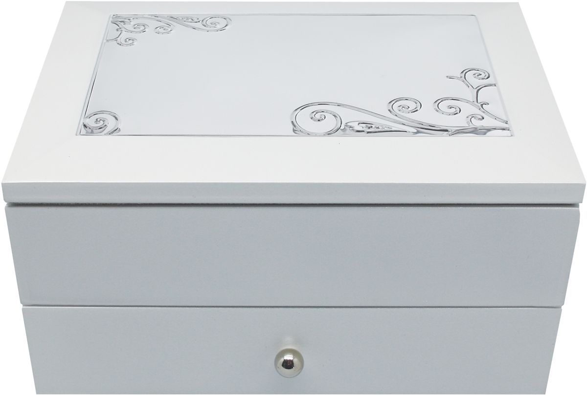 Kaunis, valkoinen korurasia jossa saat säilytettyä korusi. Kannen sisäpinnalta löytyy peili ja tilaa rasiassa on useammallekkin korulle.