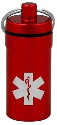 Lääkepurkki Nitro punainen Alumiinista valmistettu punainen lääkepurkki. Koko n. 5,2 x 2,2cm.