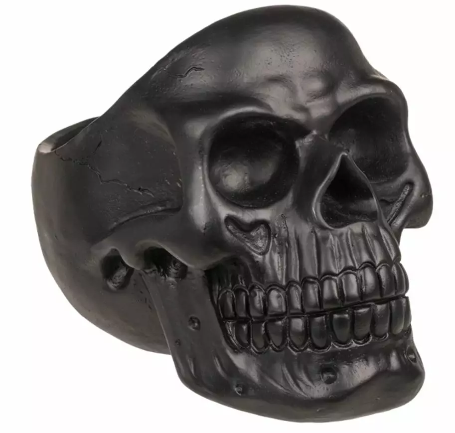 Pääkallo-kulho, silmälasipidikkeellä ja rahalokerolla, musta.