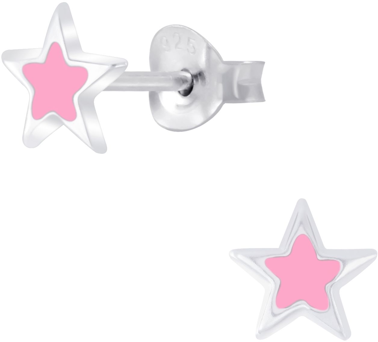 Silver Star pink emaloitu Y5893 Laadukas nikkeli- ja lyijyvapaa koru. Tuotteen ominaisuudet: Materiaali: 925 Hopea Koko: 6x6 mm Renkaan halkaisija: 12 mm Paino: 0,45 g
