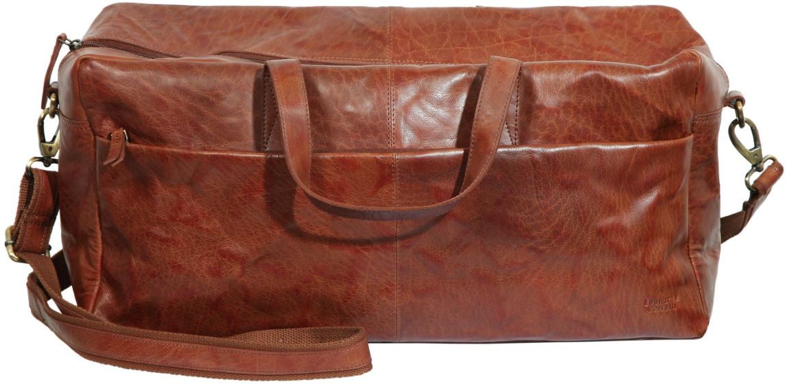 Leonardo Verrelli -brändin reissulaukku on valmistettu puhvelinnahasta, jossa on pesty vaikutus, ja siinä on yksinkertainen ulkonäkö ja antiikkiviimeistely. Laukku on täydellinen kumppani useisiin tilaisuuksiin, koska se tarjoaa riittävästi säilytystilaa niin matkoilla, arjessa tai urheilukassina kuntosalille. Siinä on myös 40 cm pitkät kantokahvat ja erillinen, irrotettava olkahihna, joka voidaan säätää maksimikokonaispituuteen noin 165 cm. Tämä tekee siitä ihanteellisen kantamiseen tukevan kahvan ansiosta olkapäällä tai poikkivartalolla. Suuri päälokero voidaan avata tai sulkea vetoketjulla. Sisällä on kaksi matkapuhelintaskua, vetoketjullinen lokero sekä kaksi kynälenkkiä ja pieni karbiininauha esimerkiksi avaimesi kiinnittämiseen. Edessä ja takana olevat kaksi lokeroa tarjoavat lisää säilytysvaihtoehtoja. Tyylikäs viikonloppupuku on ajaton yleispuku, jota voi käyttää moneen otteeseen. Lisäksi ei vain muotoilu ole vakuuttava, vaan myös mahdollisuus tallentaa kaikki tärkeät esineet. Olipa sitten viikonloppumatkalla, urheilussa tai vapaa-ajalla - tällä laukulla saat ihanteellisen kumppanin, joka on valmistettu luonnollisista ja kestävistä materiaaleista. Pussin koko tyhjänä on 24,5 cm pitkä, 48,5 cm leveä ja 20 cm syvä.