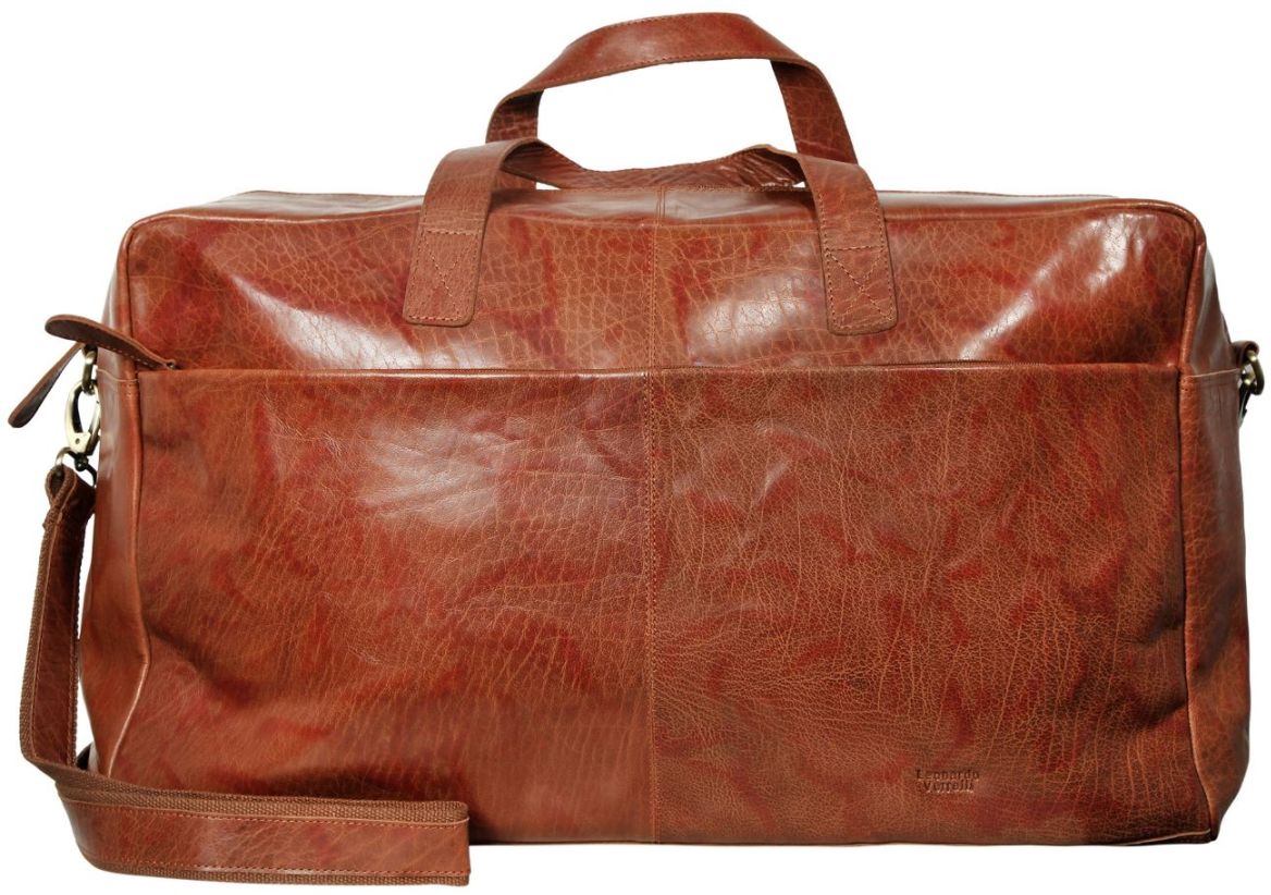 Leonardo Verrelli -brändin laukku on valmistettu puhvelinnahasta, jossa on pesty vaikutus ja siinä on