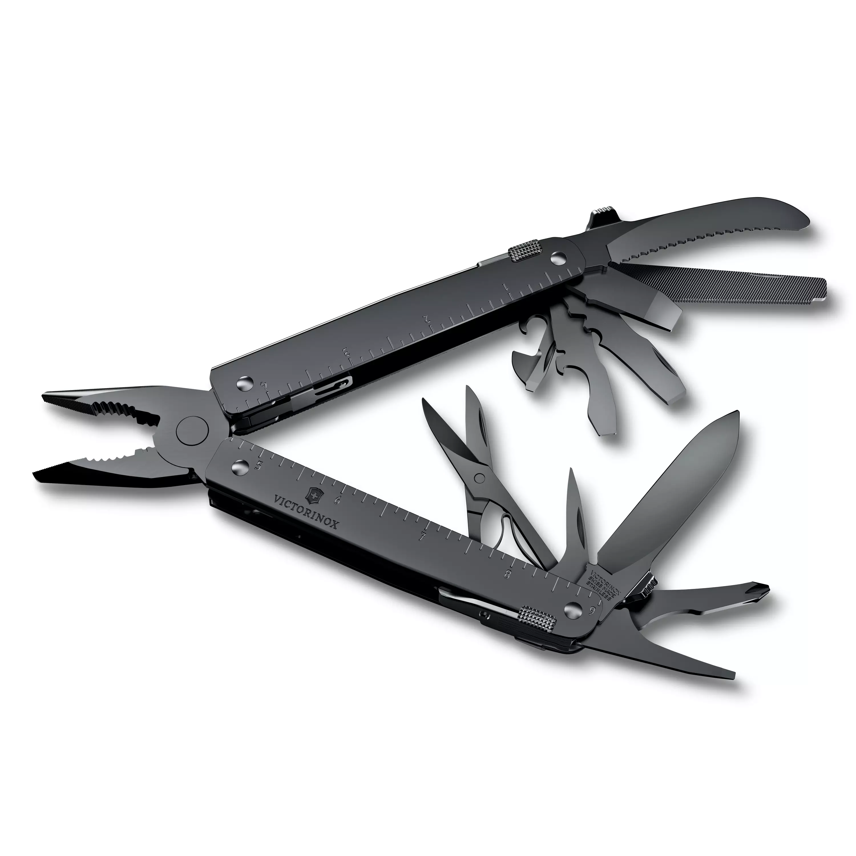 Järeä monitoimityökalu ammattimaiseen käyttöön, jonka puukon terän sekä turvavyöleikkurin voi avata helposti yhdellä kädellä. Swiss Toolin kaikki terät ovat lukittuvia ja siksi sen käyttö on turvallista. Kaikki terät aukeavat suoraan sivuilta ilman että pihtejä tarvitsee avata. Pituus suljettuna 115 mm. Työkalun mukana tulee musta, nylonista valmistettu Molle-kotelo.