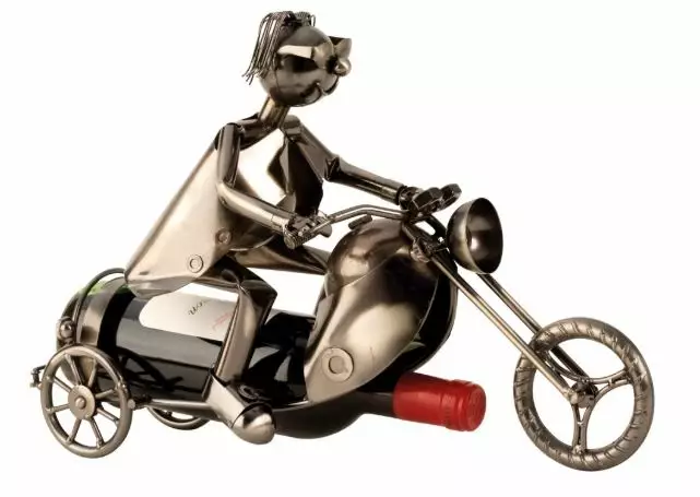 Viinipulloteline Moottoripyöräilijä 2 Tämä moottoripyöräilijä säilyttää normaalia 0,75 litraista pulloa prätkänsä alla. Mahtava lahjaidea. Tuotteen ominaisuudet: Materiaali: metalli... Lue lisää