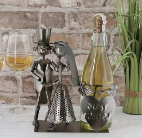 Viinipulloteline Morsian ja Sulhanen Suloinen morsian ja sulhanen viinipulloteline. Loistava lahjaidea. Tuotteen ominaisuudet: Materiaali: Metalli Koko: korkeus 28 cm, leveys 22 cm, syvyys 10 cm... Lue lisää