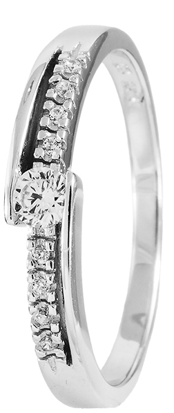 Tyylikkäästi muotoiltu hopeinen rivisormus, jossa yksi isompi zirkoni tuo lisää säihkettä sormukseen.