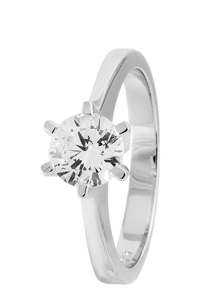 Sormuksen säihkyvä kivi on kruunuistutettu. Kruunuistutus on kuusisakarainen. Korukivi on väriltään wesselton, eli kirkas. Kivi heijastaa valoa kauniisti säihkyen.