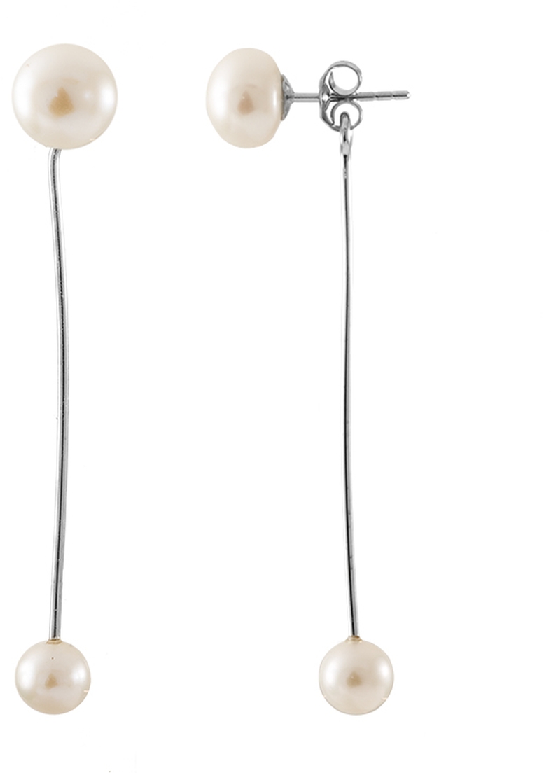 Erittäin kauniit vaaleilla helmillä koristellut korvakorut. Toinen helmi riippuu ketjussa, joka on kiinni korvakorun lukossa. Korvakorujen kiinnitys on siis tappi. Helmien koot ovat 7-9mm