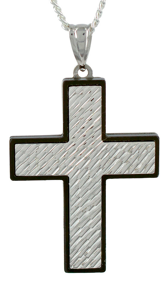 Hopeinen rippiristi akryyli reunoilla Hieno hopea/akryylinen rippiristi. Keskusta hopeaa ja reunat akryyliä. Ristin mukana toimitetaan 42cm ketju. Ristin taakse voidaan toteuttaa lyhyt kaiverrus... Lue lisää