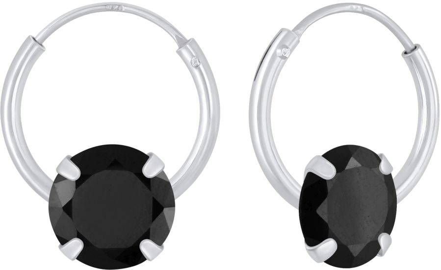 Korvarenkaat mustilla zirkoneilla Mustilla zirkoneilla koristetut korvarenkaat, valmistusmateriaalina on käytetty sterling hopeaa. Korvarenkaiden halkaisija on 12mm ja paksuus 1,2mm. Zirkonin... Lue lisää