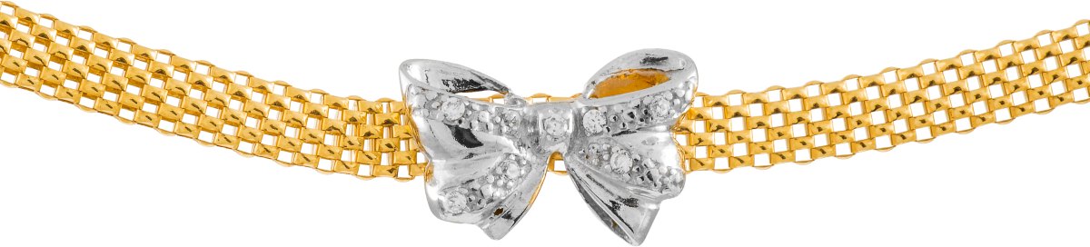 Kullattu litteä kaulaketju rusetilla Materiaali 925 hopeaa, kullattu pinta Pituus 43cm Paksuus 4,2mm Keskellä kaunis zirkonein koristeltu rusetti Papukaijalukko
