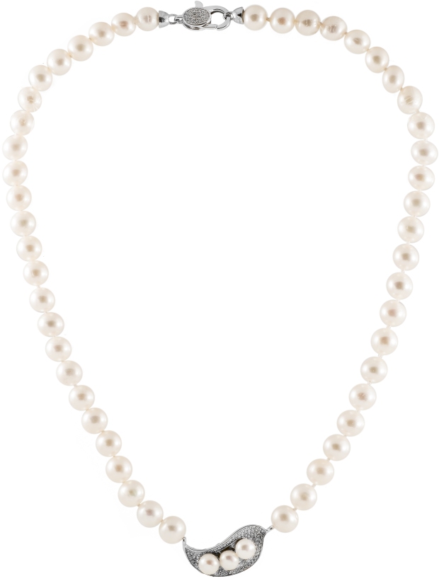 Upea Layla on säihkyvä ja näyttävä helmikoru, joka on valmistettu makeanveden helmistä ja Sterling-hopeasta. Korun keskellä komeilee kirkkain zirkonein ja helmin koristettu koriste, joka antaa korulle pienen lisän säihkettä. Koristeen koko on 28 x 12mm. Myös korun lukko on upeasti viimeistelty molemmin puolin kirkkailla zirkoneilla. Helmien halkaisija on 8-9mm ja korulla on pituutta 45cm.