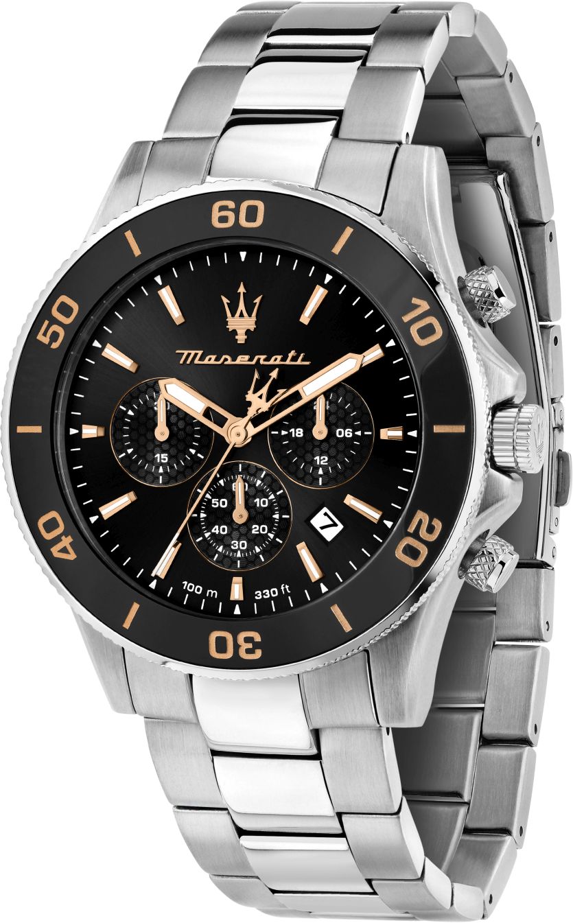 Maserati Competizione -kellon muotoilu heijastaa Maserati-autojen dynaamista kauneutta. Tässä mallissa on erityisen näyttävä kellotaulu, jossa hopeiset ja punaiset yksityiskohdat korostavat tyylikkyyttä ja liikehdintää.