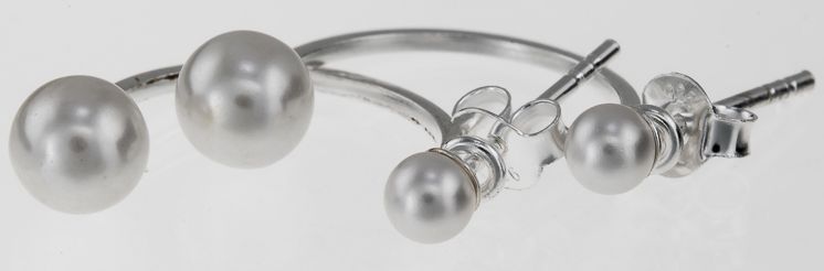 Puolikaari korvakorut HK855 - Materiaali: Sterling-hopea 925/1000 - Helmien koot: 3 ja 5mm - Helmet molemmissa korvakoruissa - Tappikiinnitykset